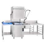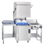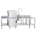 Посудомоечная машина купольного типа МПК-700К-01 производительностью 700 тарелок в час предназначена для мытья тарелок, стаканов, столовых приборов, подносов, чашек, салатниц с применением жидкого моющего и ополаскивающих средств, разрешенных к применению ФС "Роспотребнадзора". Используется на предприятиях общественного питания с числом посадочных мест 50, а также с большим числом мест, при условии, что количество обрабатываемой посуды не превышает производительности машины. Конструкция машины позволяет использовать ее как при горячем, так и при холодном водоснабжении.