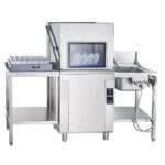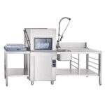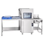 Посудомоечная машина купольного типа МПК-1100К производительностью 1100 тарелок в час предназначена для мытья тарелок, стаканов, столовых приборов, подносов, чашек, салатниц с применением жидкого моющего и ополаскивающих средств, разрешенных к применению ФС "Роспотребнадзора". Используется на предприятиях общественного питания с числом посадочных мест 50, а также с большим числом мест, при условии, что количество обрабатываемой посуды не превышает производительности машины. Конструкция машины позволяет использовать ее как при горячем, так и при холодном водоснабжении.