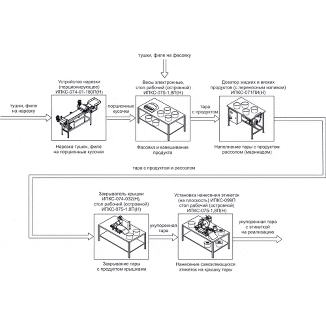 Комплект оборудования для фасовки и упаковки соленой рыбы (тушек, филе, порционированных кусков) ИПКС-0808