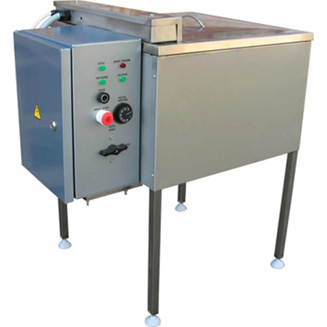 Конструктивно профессиональная промышленная фритюрница представляет собой цельнотянутую ванну, закрепленную в прямоугольном каркасе и термоизолированную с боковых сторон. В дне ванны установлены три трубчатых электронагревателя. Автоматический блок управления позволяет задавать и длительное время поддерживать температуру теплоносителя.