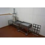 Пресс для сыра пневматический предназначен для прессования сырных головок в форме. С целью увеличения количества прессуемых сыров, пресс ИПКС-058-02(Н), не имеющий в своем составе фильтра-регулятора, предназначен для последовательного подключения к прессу ИПКС-058-01(Н) как к основному. Допускается подключать в одну цепь до 5 прессов ИПКС-058-02(Н). В этом случае управление давлением прессования в пневмоцилиндрах подключенных прессов ИПКС-058-02(Н) осуществляется с помощью фильтра-регулятора на основном прессе ИПКС-058-01(Н), что обеспечивает одинаковое усилие на всех сырных головках. Для установки в сырный пресс более 2-х форм, необходимо использовать дополнительные вкладыши, изготавливаемые по отдельному заказу. Выполнен из пищевой нержавеющей стали.