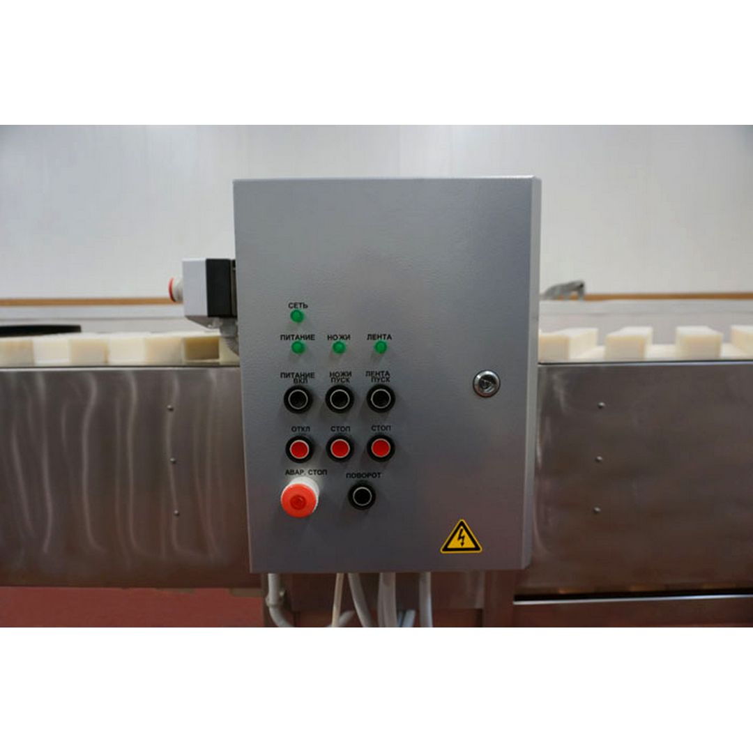 Блок управления производит включение/отключение транспортера, блока режущих ножей и позволяет осуществлять регулировку скорости движения транспортера и скорости вращения ножей.