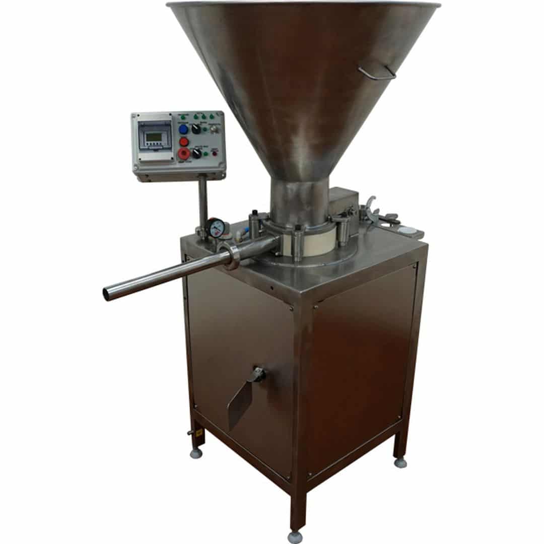 Данное оборудование предназначено для производства сосисок, сарделек, колбас, колбасного сыра, паштетов, творога и т.п. Шприц вакуумный роторный предназначен для порционного (с настройкой требуемой дозы) наполнения полимерных и натуральных оболочек фаршем или иным однородным продуктом (паштеты, плавленый сыр, творог, джем и др.).
