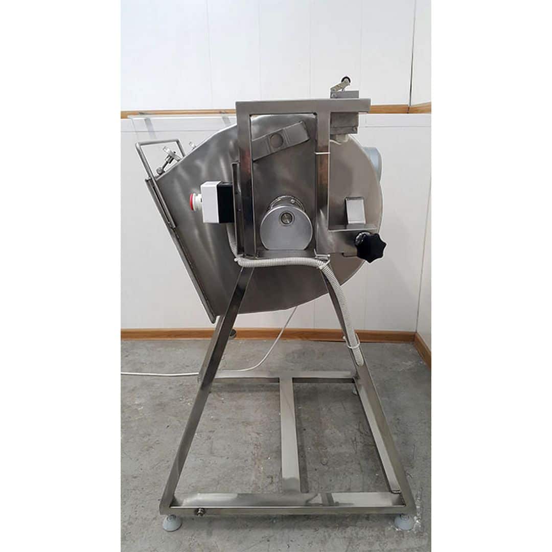 Маслоизготовитель (маслобойка промышленная) имеет вымешивающее устройство лопастного типа для эффективной механической обработки масляного зерна, оснащен краном для слива пахты. Дежа имеет герметично прилегающую крышку из прозрачного пластика, что позволяет визуально контролировать все стадии технологического процесса. Имеет четыре поворотные колесные опоры (диаметром 100 мм) со стопором, позволяющие, при необходимости, легко перемещать его по производственному помещению.