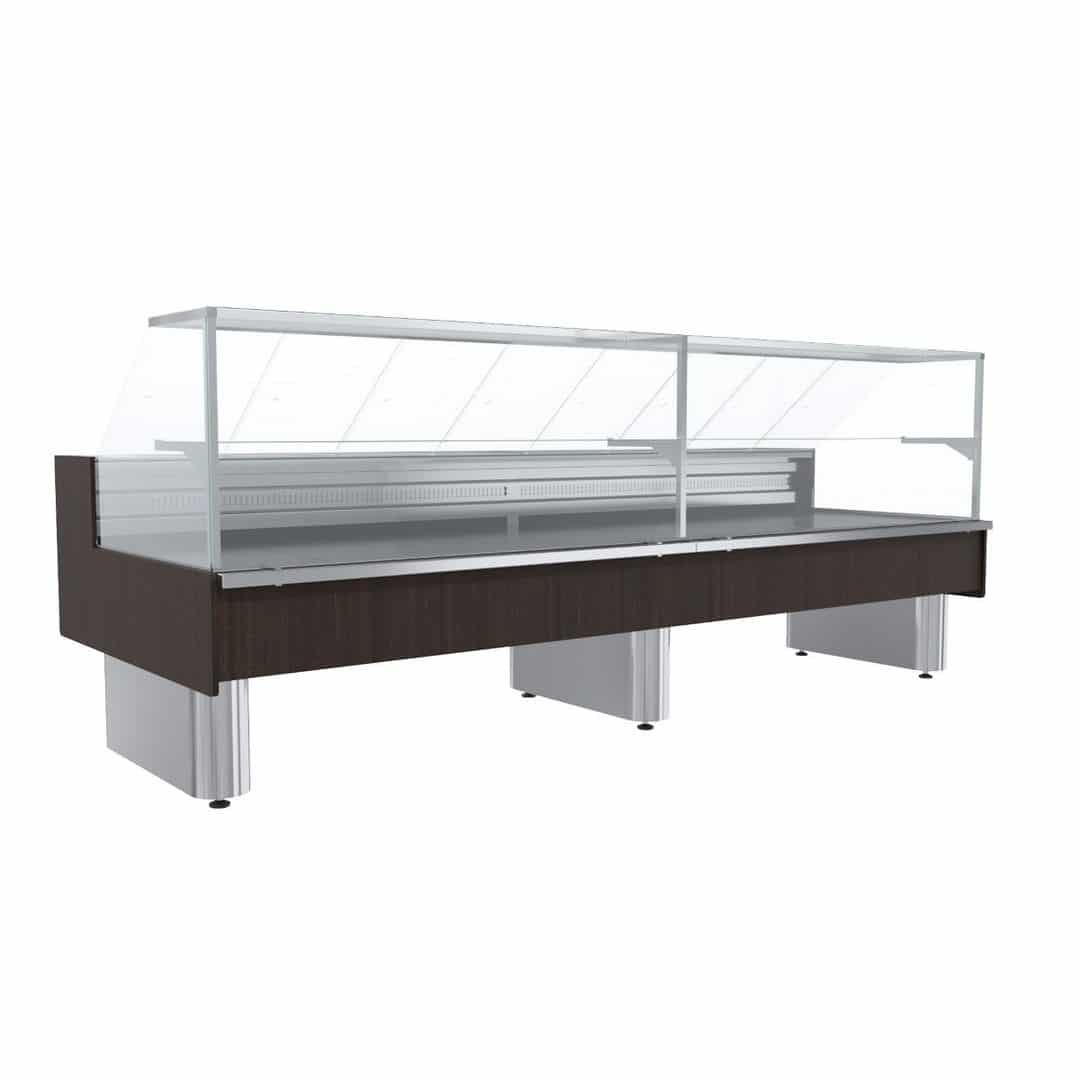Холодильная витрина Полюс ВХС-1,5 Carboma GC110 вынос (GC110 SM 1,5-11) – среднетемпературная модель экспозиционной витрины от российского производителя. Для эксплуатации в продуктовых маркетах и выкладки продукции, не нуждающейся в заморозке или отрицательной температуре хранения. Особенности модели: контролирующая электроника – блок микропроцессорный, дисплей для индикации температуры в камере; модель под выносное хладоснабжение – подключение к внешнему агрегату или централи; четырехстороннее остекление, прямые углы фронтальной части; оттаивание естественными теплопритоками; запасник продукции (накопитель) – в наличии; белое светодиодное освещение выкладки. Стандартная комплектация: панели обшивки – сталь окрашенная, передняя панель опционно: сталь коррозионностойкая или МДФ; горизонтальная установка – ножки с винтовым механизмом; вентиль терморегулирующий – ТРВ; материал рабочих поверхностей: полка, столешница – сталь пищевая; труба-бампер из коррозионностойкой стали. Обратите внимание: цена указана за витрину без боковин. Они приобретаются отдельно.