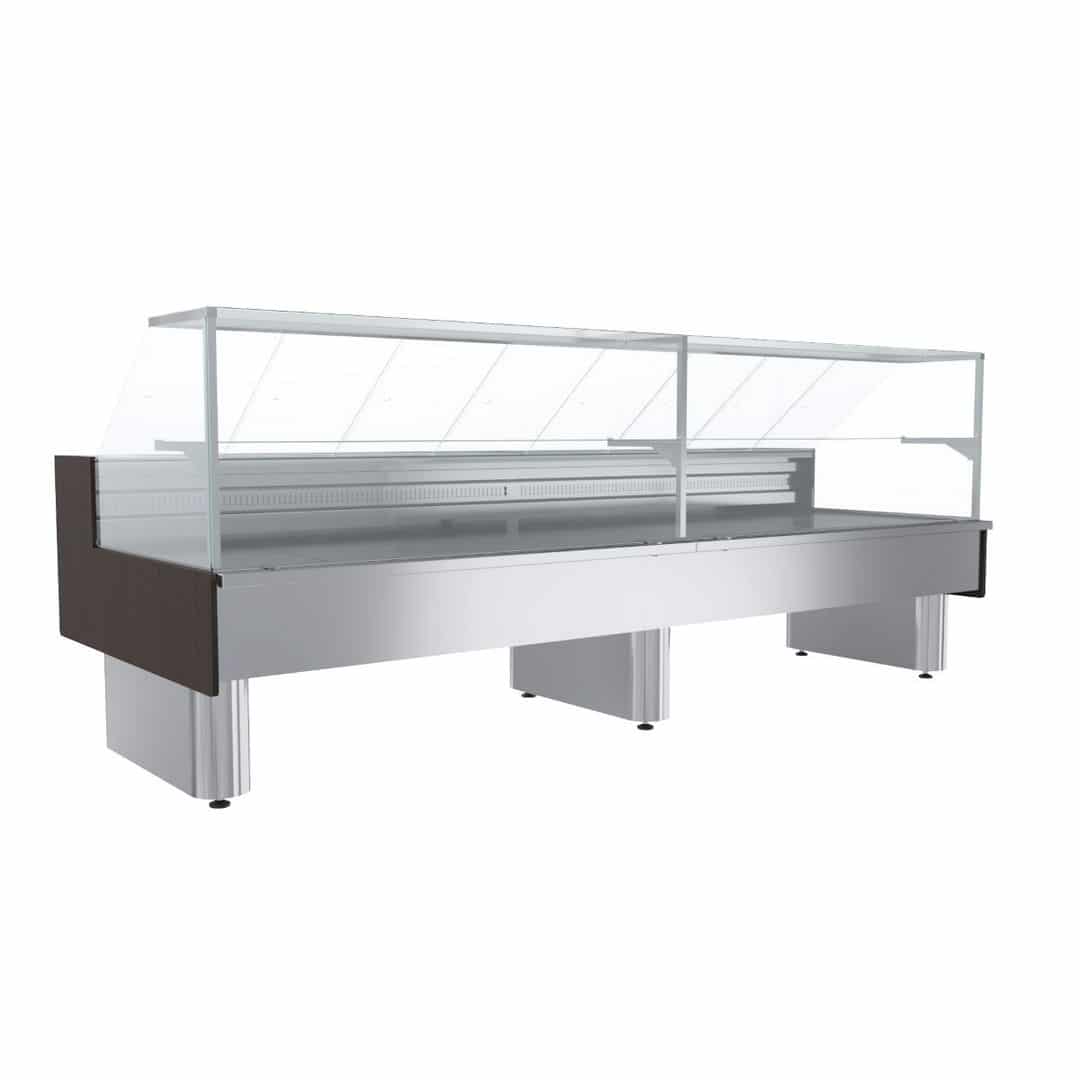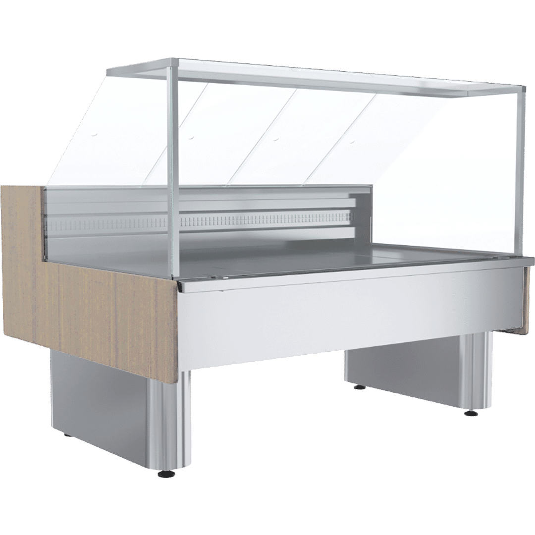 Холодильная витрина Полюс ВХСо-1,5 Carboma GC110 (динамика) вынос (GC110 VM 1,5-21) – модель открытого типа из серии Bavaria 2: низкое энергопотребление, элегантный минималистичный дизайн, широкий выбор аксессуаров: полок, разделителей, подставок, поддонов. Особенности модели: низкая стеклянная структура – остекление с трех сторон без верхней части (энергосберегающее стекло); принудительная оттайка (авторежим), нагрев электрический; блок-контроллер микропроцессорный, внешнее индикационное устройство – дисплей цифровой; модель под выносной холод – включение в систему ЦХС или подключение к удаленному хладоагрегату; подсветка – теплый белый свет, энергосберегающая (LED). Стандартная комплектация: встроенный терморегулирующий вентиль (ТРВ); камера расположена на высоких опорах с регулируемыми круглыми наконечниками; материал внешней облицовки (корпус/опоры) – сталь окрашенная; при необходимости (опционно) корпус декорируется сталью нержавеющей/МДФ; поверхности для продукции – сталь пищевая, шлифованная; стальной коррозионностойкий бампер – труба профильная. Обратите внимание: цена указана за витрину без боковин. Они приобретаются отдельно.