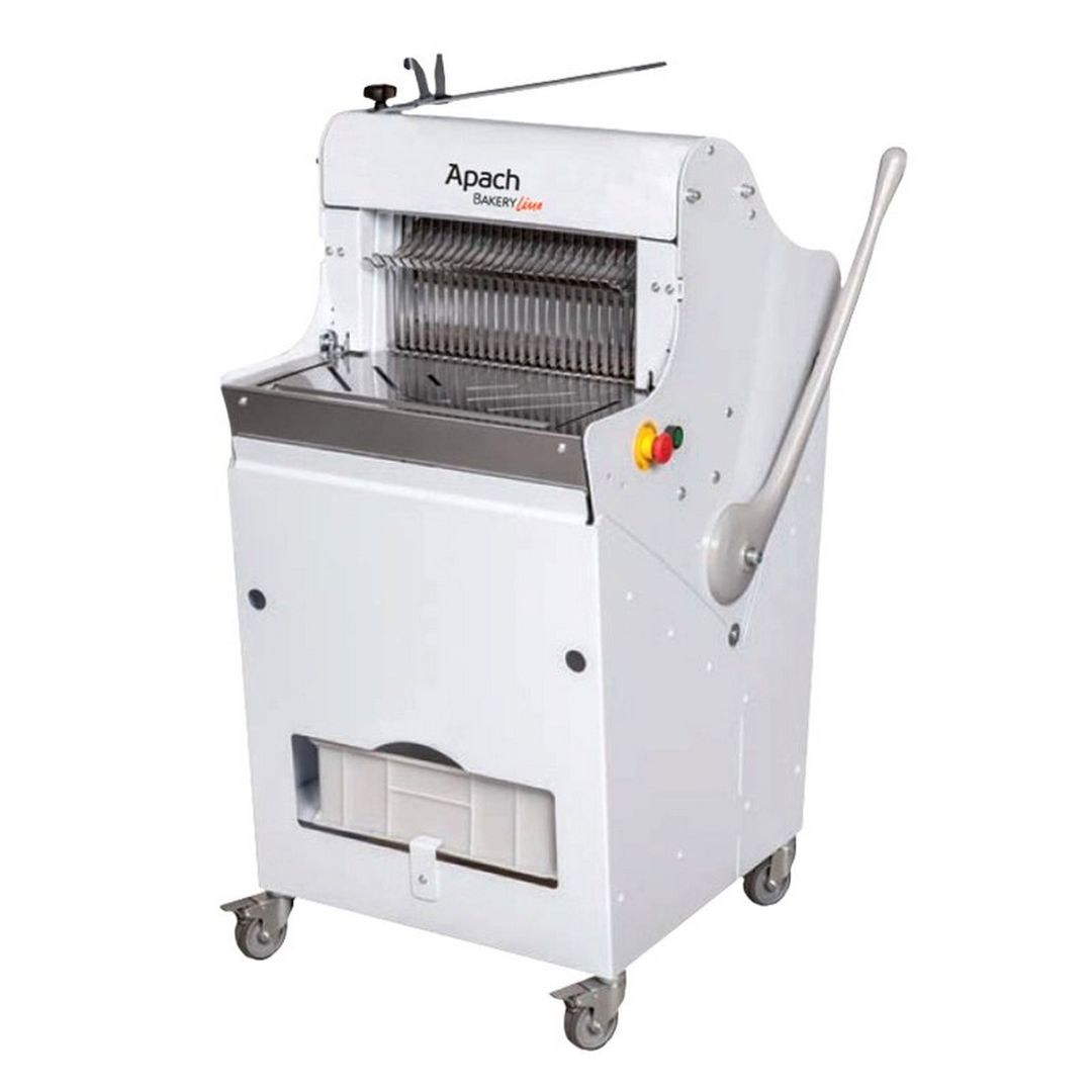 400х300х180мм рабочие габариты, нормальная ширина реза 420мм, шаг лезвий 10 мм, напольная модель оборудования для общего использования, для нарезки хлеба с более плотным мякишем или с коркой средней твёрдости с ручным режимом нарезки