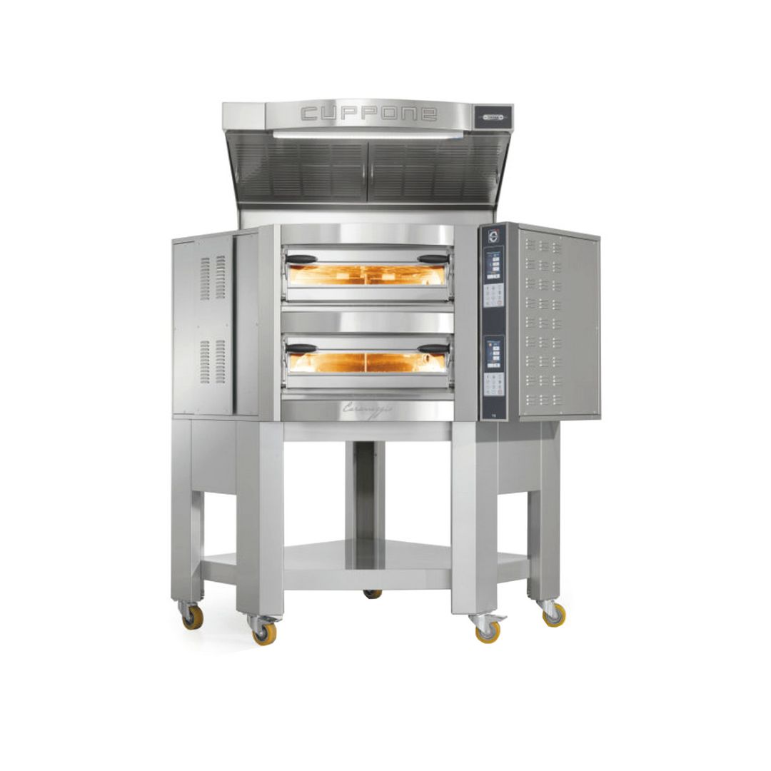 948х820х1445х1639х669х777мм, 11,8+11,8кВт, 380В, размер камеры: 765х640х1181х1181х640х138мм, вместимость 8+8 пицц по 35см или 4+4 по 50см, угловая электрическая печь