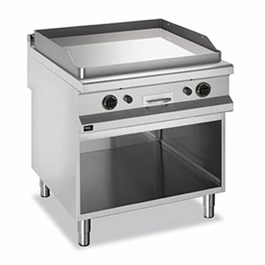 800*900*850 мм, газ 2х8 кВт, гладкая, материал рабочей поверхности — хромированная конструкционная сталь, на откр.стенде