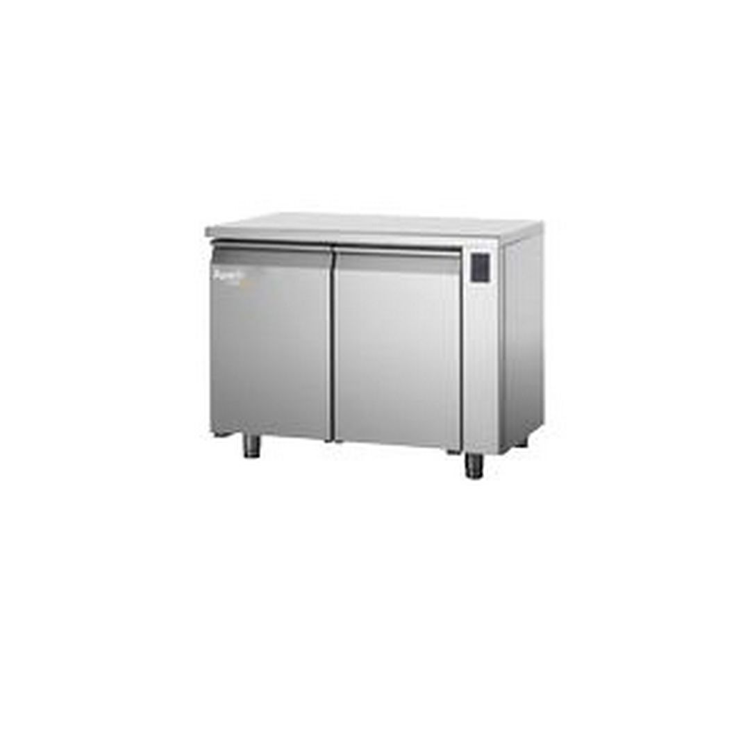 1240х800х850 мм, 115 кг, 0,92 кВт, 220 В, от -15 до -22С, энергосбережение, нерж сталь AISI 304, толщина изоляции 60 мм, со столешницей без борта, 2 глухие двери, R452а, в комплекте: 8 пар направляющих EN600x400 мм, без агрегата