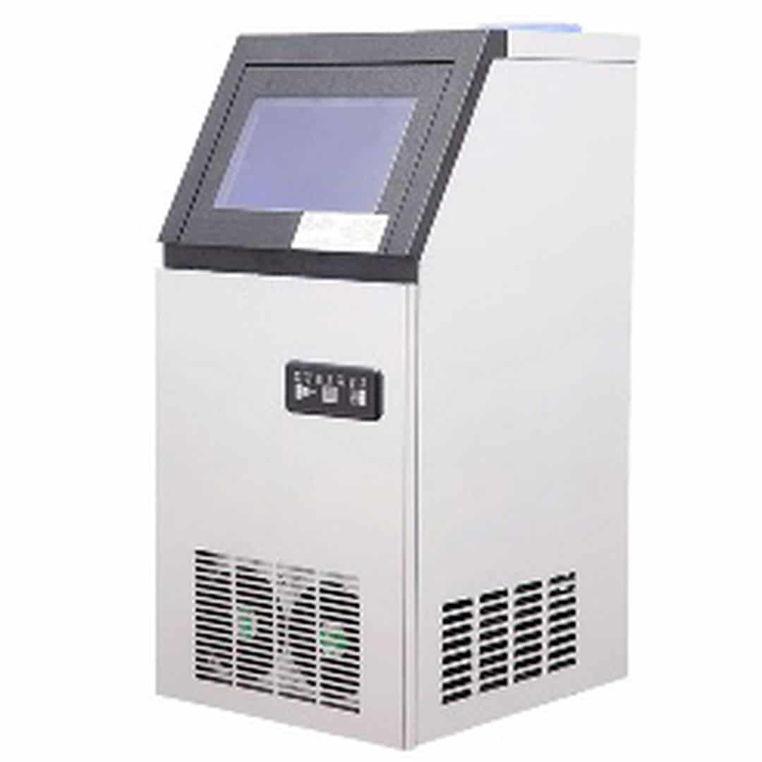 360x430x760мм, 0,495кВт, 220 В, 36кг, производительность 40 кг/сутки, производительность за цикл — кубиков/минут — 45/15 при температуре воды 25С, бункер 13 кг, воздушное охлаждение, кубиковый лёд