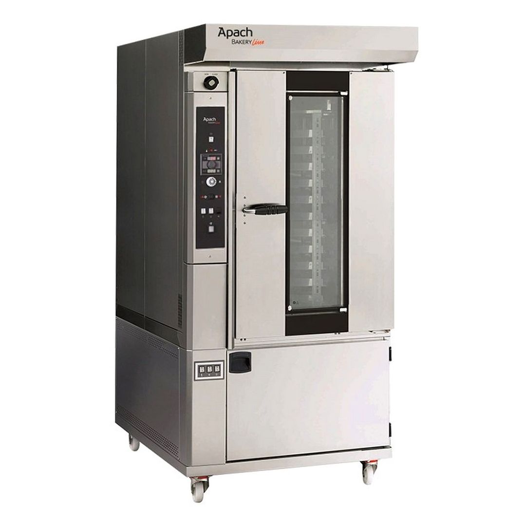 950х1240×2390мм, 18000кКал/ч+1,5кВт, горелка в комплекте, под листы 40х60см, электромеханическая панель управления, пониженная скорость обдува, крюк, козырек с вытяжкой, поставляется в полной сборке на расстойке, полностью из нержавеющей стали