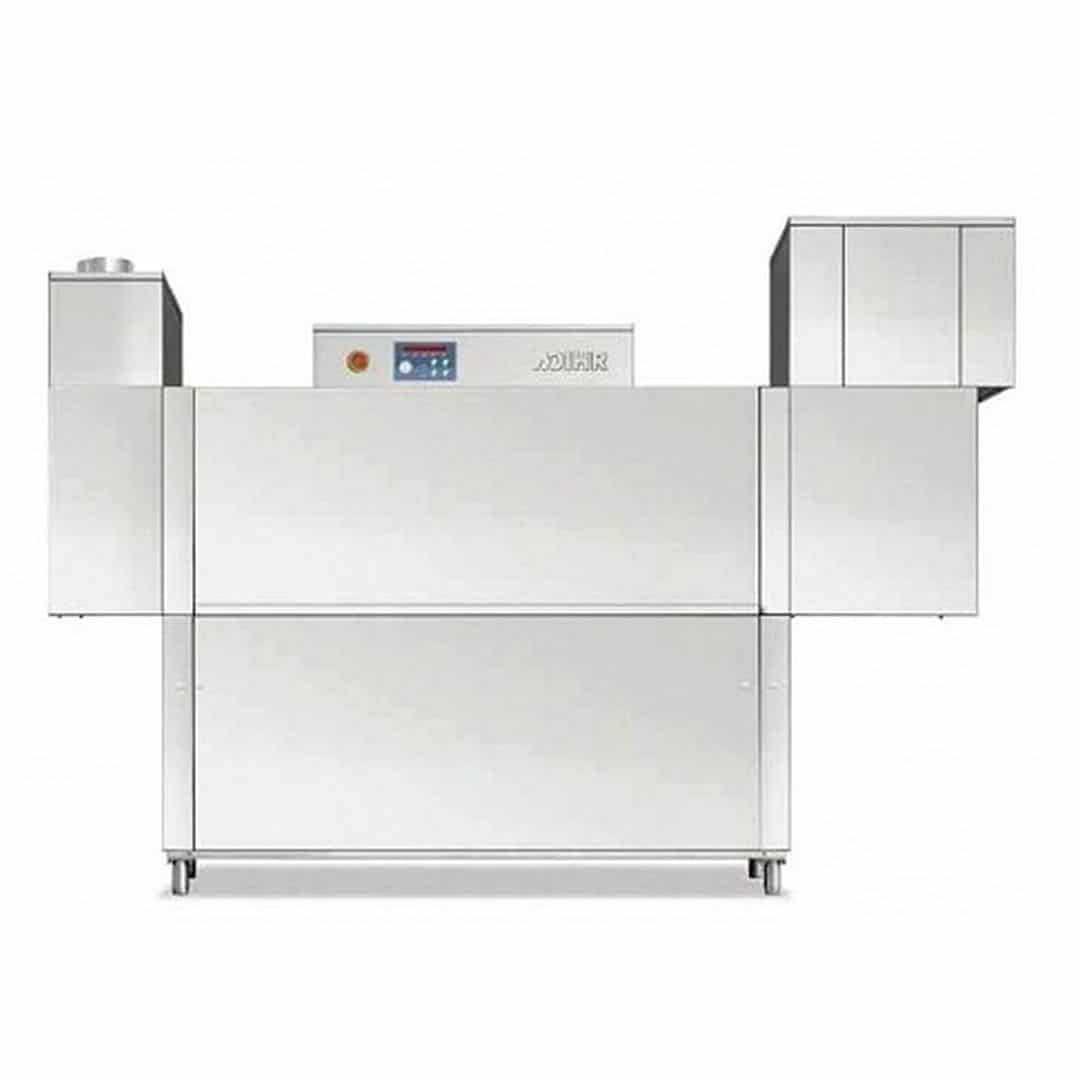2480x715x1565/1900, 380В, 30кВт, 100-150 кас/ч, DR24 — сушка 4,5 кВт; HR5 — теплорекуператор — для подключения к холодной воде (потреб. энергии, t и влажн. воздуха в помещен. ниже, чем при доп. мощности); DDE — дозатор моющих и ополас. средств, корзины в комплекте: С40 для тарелок, C44 для бокалов, С43 для GN1/1, C47 для приборов, DX — движение СПРАВА-НАЛЕВО