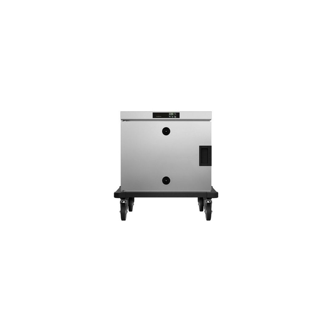 755x855x790мм, 1,5 кВт, 5 GN2/1 или 10 GN1/1, на колесах. Максимальная загрузка 36 кг, рабочая температура: +30С+120С.