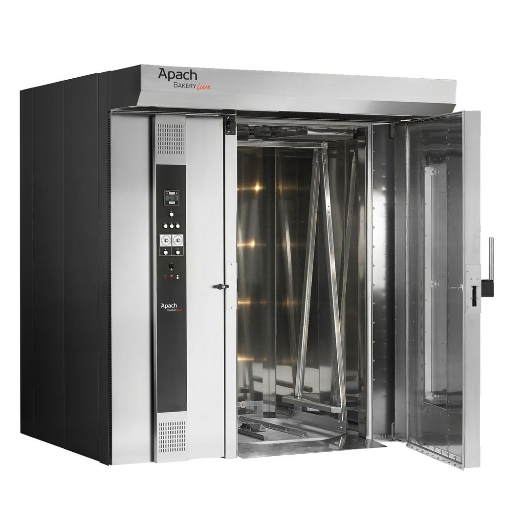 2150х1700х2600мм, 80000 ккал/ч + 3кВт, среднее потребление 45000 ккал/ч, под листы 60х80см, горелка в комплекте, электромеханическая панель управления, пониженная скорость обдува, платформа, козырек с вытяжкой, обслуживание осуществляется спереди, поставляется в 3 предсобранных модулях, защита уплотнителя на двери, полностью из нержавеющей стали