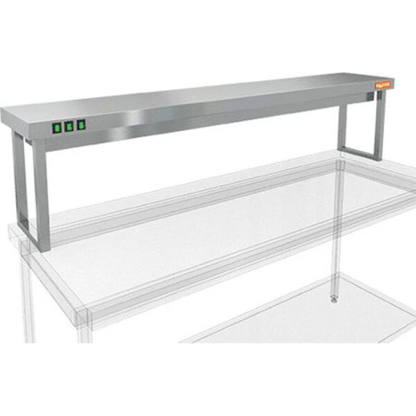 600х300х800 Полка тепловая настольная разборная, 2 яруса, комбинированная, верхний уровень с подогревом, нижний без подогрева. Полки из нержавеющей стали марки AISI 430 толщиной 0,8мм, каркас труба 20х20 из нержавеющей стали марки AISI 430 толщиной 1,2мм. Мощность 0,6кВт. Поставляется в разобранном виде., вес 7кг