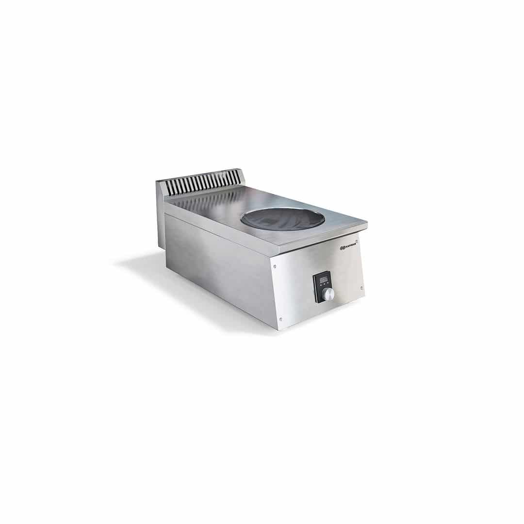400х760х400мм, Плита одноконфорочная вок, столешница из нержавеющей стали марки AISI 304 толщиной 1,2 мм, корпус из нержавеющей стали марки AISI 430 толщиной 0,8мм. Мощность 6кВт, ВОК диаметром 300мм, борт высотой 100мм, питание 380В. Толщина стеклокерамики 6мм. 9 уровней мощности. Поставляется в собранном виде.
