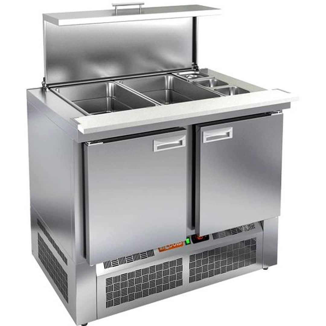 1000х700х850мм, SLE3-11GN O ПОЛИПРОПИЛЕН С КРЫШКОЙ стол для салатов, охл. (+2+10), островн., 2 двери, ниж.распол.агрегата,