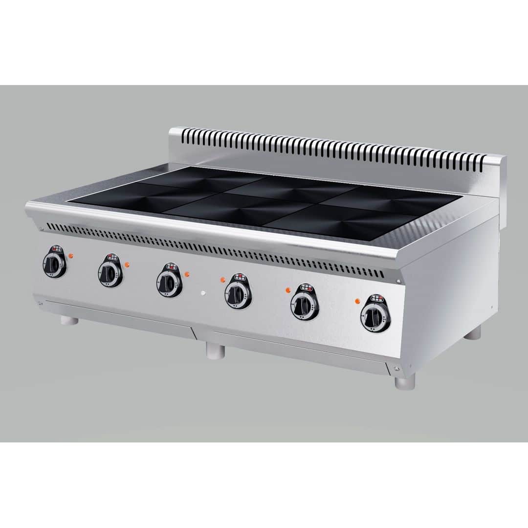 1110x700x450 полностью — нерж. сталь; — чугунные конфорки 300х300 мм; — все регуляторы расположены на передней панели; — мощность каждой конфорки 2,8 кВт; — разогрев до 400 °С за 25 мин; Масса, кг 96 кг. Вес в упаковке 130 кг. Количество конфорок 6 Площадь жарочной поверхности, не более м2 0,54м2 Размеры в упаковке (ДхГхВ) 1315x900x576 мм Температура рабочей поверхности конфорок не более Со 400 Со