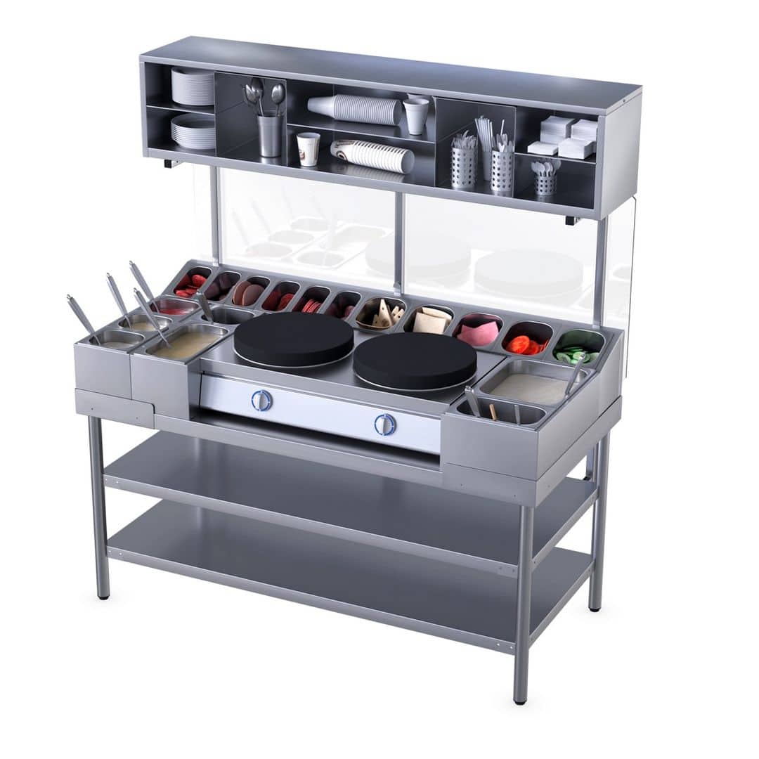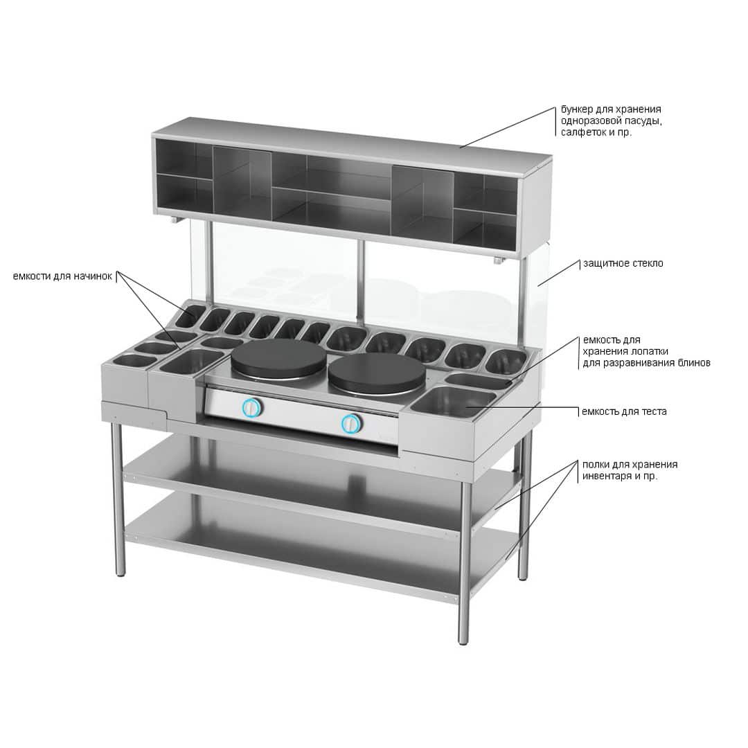 1500х740х1670 мм, разборная Комплект гастроемкостей в составе блинной станции: Гастроемкость GN-1/2 Н-150 1шт. Гастроемкость GN-1/3 Н-100 1шт. Гастроемкость GN-1/4 Н-150 1шт. Гастроемкость GN-1/6 Н-100 9шт. Гастроемкость GN-1/9 Н-100 6шт.