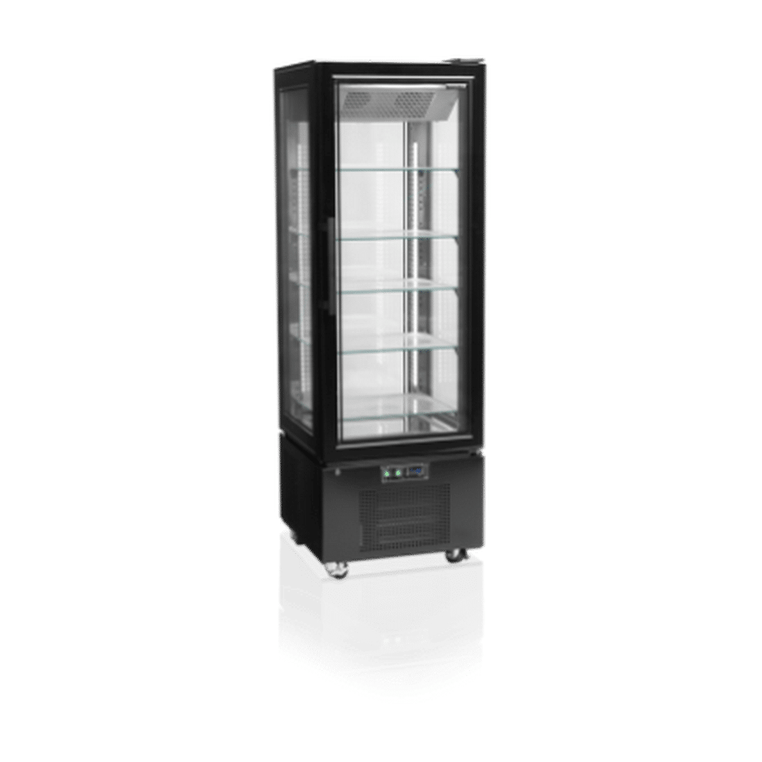 650 x 650 x 1950мм, 1 кВт, 220В, -22 …-18 °C, 203 кг, объем полезный 248л., стекло с 4-х сторон, светодиодная подсветка, вентилируемое охлаждение, 5 полок, цвет черный