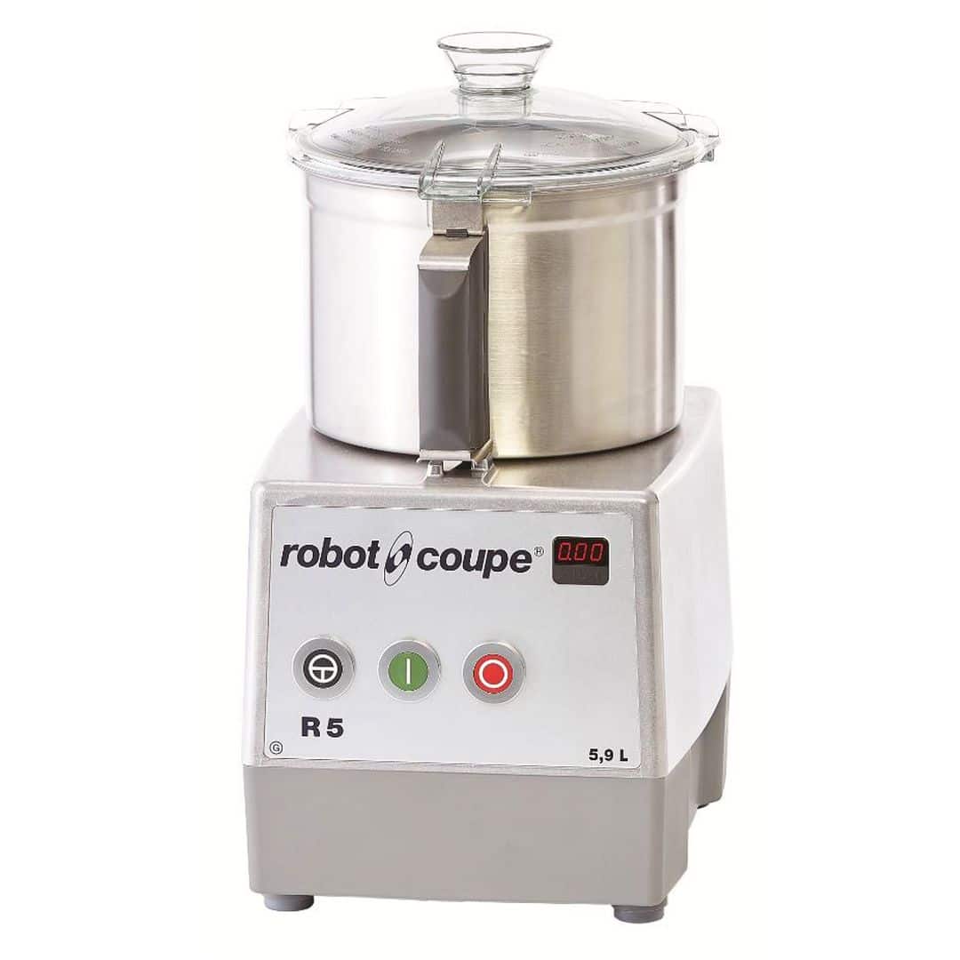 ЗАМЕНА НА КУТТЕР ROBOT COUPE R5G 3Ф 280х350х490 мм, Таймер, 2 скорости. R5G измельчает, приготавливает тонкие фарши, эмульсии, взбитые сливки, размельчает орехи и замешивает тесто Габариты 490Х280Х350 мм, Трёхфазный 400В/50/3. Мощность 1200 Вт. 2 скорости 1500 и 3000 об/мин. 3,4 А — Штепсельная вилка не включена в комплект. Чаша из нержавеющей стали с ручкой объёмом 5,9 л, поставляется с ножом низкой посадки с 2 гладкими лезвиями.