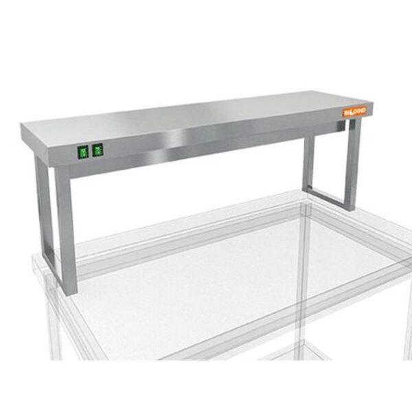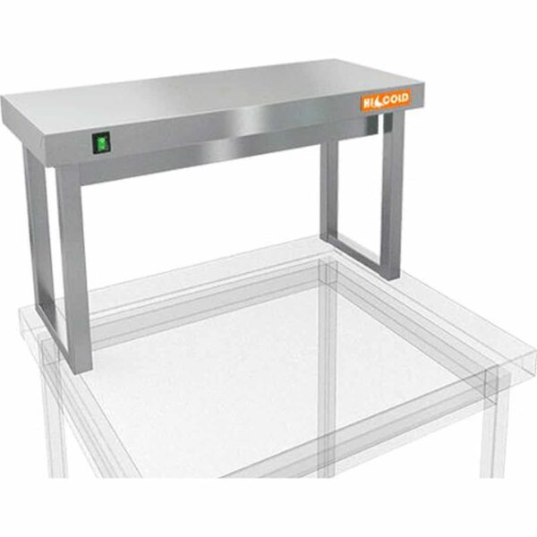 1300х300х800 Полка тепловая настольная разборная, 2 яруса, комбинированная, верхний уровень с подогревом, нижний без подогрева. Полки из нержавеющей стали марки AISI 430 толщиной 0,8мм, каркас труба 20х20 из нержавеющей стали марки AISI 430 толщиной 1,2мм. Мощность 1,2кВт. Поставляется в разобранном виде., вес 12кг