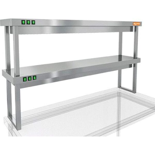 1800х400х400 Полка тепловая настольная разборная, 1 ярус. Полка из нержавеющей стали марки AISI 430 толщиной 0,8мм, каркас труба 20х20 из нержавеющей стали марки AISI 430 толщиной 1,2мм. Мощность 1,8кВт. Поставляется в разобранном виде., вес 8,2кг