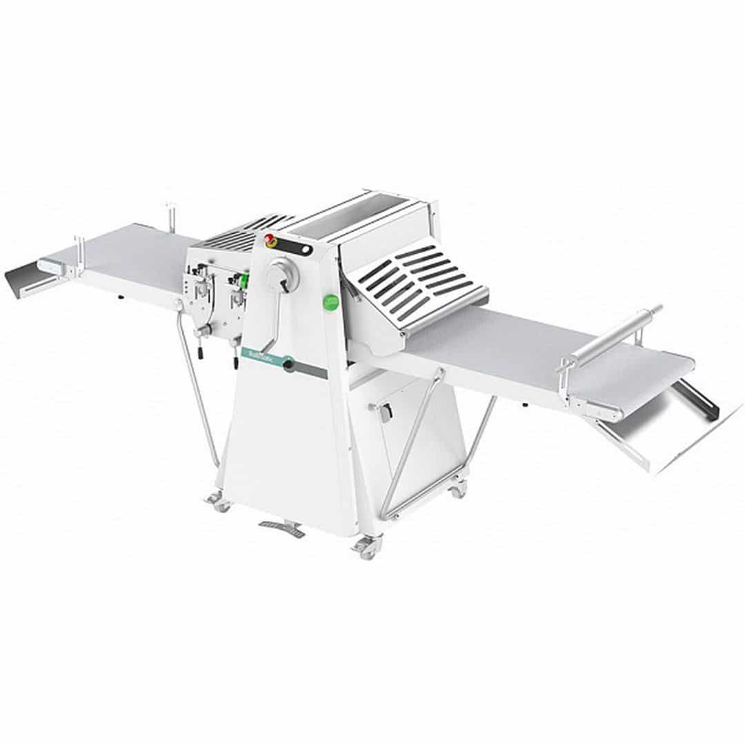 1300 x 2200 x 1630, 230 В 1Ф 50/60 Гц, 0,75 кВт; лента 600×1400 мм; напольная, руч. управление, со встроенной станцией нарезки. В комплекте с опциями: набор ножей для нарезки круассанов 140*130мм, полкой и лотками, усиленной правой ножкой с колесами+стойкой для ножей