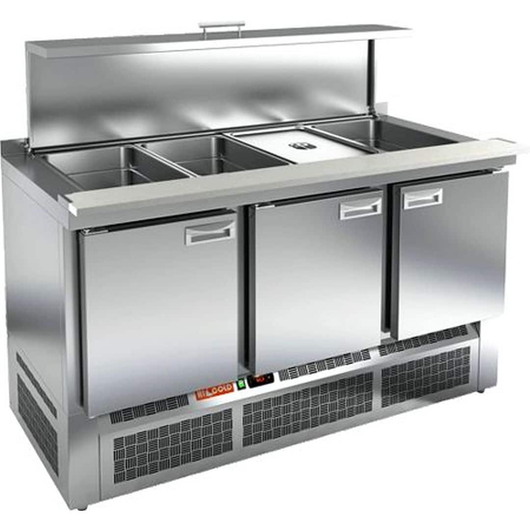 1485х700х850мм, SLE3-111GN ПОЛИПРОПИЛЕН С КРЫШКОЙ стол для салатов, охл. (+2+10), 3 двери, 1485х700х850мм, ниж.распол.агрегата,