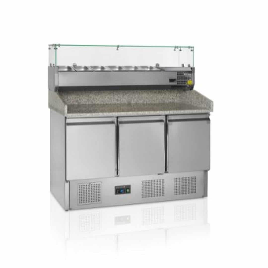 1365 x 700 x 1457 мм, 0,175 кВт, 220В, +2/+10С, брутто/нетто — 400/368л, 210 кг, с встр. агр., R600A, 3 двери, GN 1/1, витрина- надстройка для гастроемкостей с топпингами