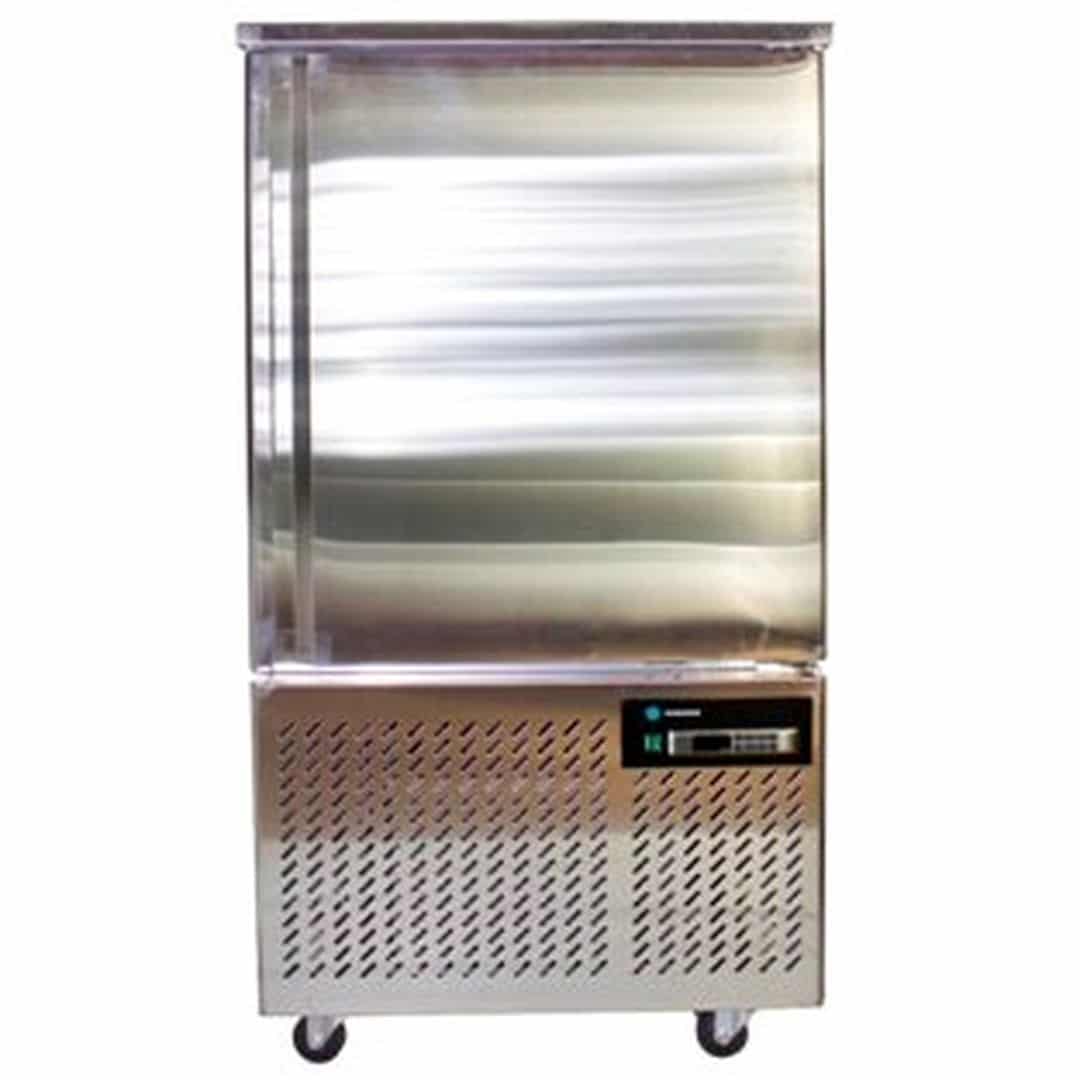 800x800x1515мм, 160кг, 0,98 кВт, 220В, контроллер Dixell, ТЭН оттайки, термощуп-1шт в комплекте, тип охлаждения — вентиляция, поддержка гастроемкостей GN1/1- 10шт или противеней 400×600 — 10шт, глубина противеней / гастроемкостей GN1/1 — 40 мм, +70С до +3С за 90мин (40кг), +70С до -18С за 240мин (28кг), на колёсах, объем 196л