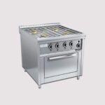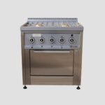 Габариты (шхгхв), мм: 800х900х850(760) Мощность горелок, кВт: 4×6,0 Мощность духового шкафа, кВт: 1х8,0 Артикул: 822439 Масса, кг: 140 Расход природного (сжиженного) газа, м3⁄ч (кг/ч): 3,27 (2,54) Резьба входного патрубка газопровода: G½-B Количество уровней духового шкафа: 6 Материал корпуса: нержавеющая сталь Материал решетки: нержавеющая сталь Дополнительные параметры: газконтроль, пьезорозжиг горелки духового шкафа Комплектация: плита, инструкция, 2 противня GN2/1 Гарантия: 1 год Плита газовая ПРГ-IIA-4М ДШ «Standart» серия 900 Напольная газовая плита с 4-мя мощными горелками по 6 кВт и духовым шкафом. Рабочий диапазон температур в шкафу составляет 110-325 °С, имеется пьезоподжиг горелки. В комплект входят 2 противня из нержавеющей стали размером 530х650х40 мм. Съёмная решетка для гастроемкостей позволяет свободно перемещать посуду по всей поверхности плиты. На решетке одновременно могут размещаться 4 кастрюли объёмом 40 л. Плита оснащена системой газконтроля и может работать как на природном, так и на сжиженном газе. Корпус изготовлен из высококачественной нержавеющей стали, что значительно облегчает уход за плитой. Герметичная столешница дает возможность производить влажную уборку, исключая попадание жидкости во внутренние полости плиты. Ножки плиты регулируются по высоте, компенсируя неровности пола. С выкрученными ножками высота плиты составляет 760 мм, что существенно облегчает ее транспортировку, позволяя занести в стандартный дверной проем. Плита идеально подходит для предприятий общественного питания с небольшой проходимостью. Главным ее достоинством является простота эксплуатации, а небольшие размеры позволяют разместить даже в малогабаритной кухне. Дополнительные Опции: Противень из нерж. стали GN2/1 Мобильная плита (на колесах) *При необходимости плиту можно комплектовать горелками мощностью 4 кВт.