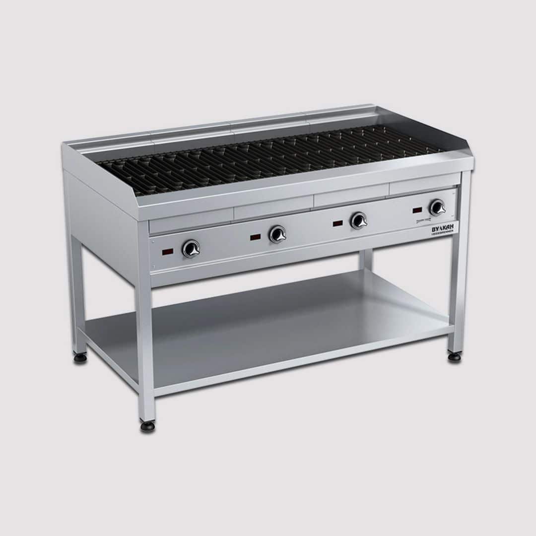 Габариты (шхгхв), мм: 1300х700х850 Мощность, кВт: 18 (с 4 зонами нагрева по 4,5 кВт) Материал рабочей зоны: чугунная решетка Питание, В: 380 С лавовыми камнями