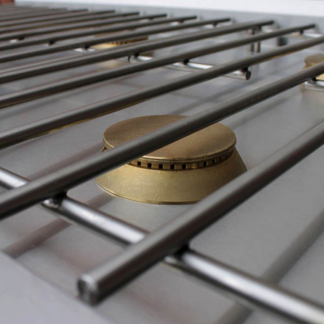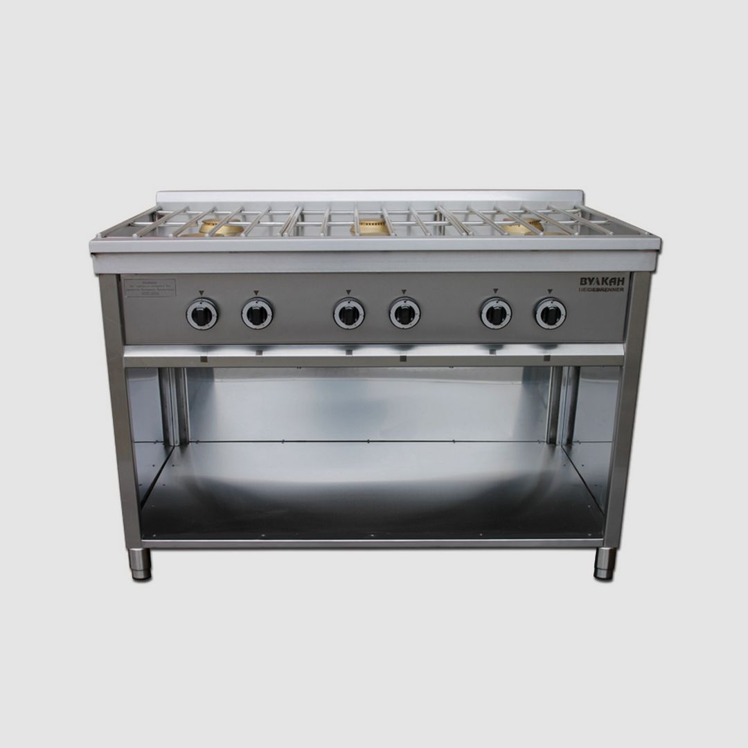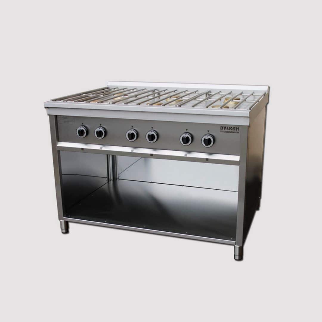 Габариты (шхгхв), мм: 1200х700х850(760) Мощность горелок, кВт: 6×6,0 Мощность духового шкафа, кВт: нет Артикул: 82310 Масса, кг: 125 Расход природного (сжиженного) газа, м3⁄ч (кг/ч): 3,65 (2,84) Резьба входного патрубка газопровода: G½-B Материал корпуса: нержавеющая сталь Материал решетки: нержавеющая сталь Дополнительные параметры: газконтроль Комплектация: плита, инструкция Гарантия: 1 год Плита газовая ПРГ-IIA-6М «Standart» серия 700 Напольная газовая плита с 6-ю мощными горелками по 6 кВт и съёмной решеткой из нержавеющей стали, позволяющей свободно перемещать посуду по всей ее поверхности. На решетке одновременно размещаются 6 кастрюль объёмом 30 л. В нижней части плиты имеется ниша для хранения кухонного инвентаря. Плита оснащена системой газконтроля и может работать как на природном, так и на сжиженном газе. Корпус изготовлен из высококачественной нержавеющей стали, что значительно облегчает уход за плитой. Герметичная столешница дает возможность производить влажную уборку, исключая попадание жидкости во внутренние полости плиты. Ножки плиты регулируются по высоте, компенсируя неровности пола. С выкрученными ножками высота плиты составляет 760 мм, что существенно облегчает ее транспортировку, позволяя занести в стандартный дверной проем. Плита идеально подходит для предприятий общественного питания с высокой проходимостью. Главными ее достоинствами являются простота эксплуатации и большая производительность. Дополнительные Опции: Высота плиты 350 мм (настольный вариант) Распашные двери Мобильная плита (на колесах) *При необходимости плиту можно комплектовать горелками мощностью 4 кВт.