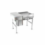 - При работе транспортера остатки пищи и жидкости удаляются с поверхности ленты скребком-очистителем и сбрасываются в специальный поддон