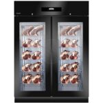 Описание Шкаф для вызревания мяса и сыра Lo Stagionatore Meat&Cheese 1500 Black используется для вызревания твердых сыров и для сухой выдержки мяса. Созревание сыров требует более высокой влажности и температуры, в отличие от мяса, именно поэтому шкаф данной линейки имеет возможность подключения к воде, для расширения значений диапазона влажности. Кроме того, шкаф Meat&Cheese имеет расширенный ассортимент аксессуаров и опций, таких как touch-панель управления, с возможностью загрузки/выгрузки рецептов и разбора фаз созревания, контактный датчик продукта и другое. Идеально подойдет для ресторанов, мясных лавок и небольших мясных производств. Сухая выдержка мяса (или сухое созревание мяса) – это одна из древнейших техник обработки мяса. Процесс основан на активизации ферментов, присутствующих в мясе, что приводит к ускорению химических процессов, которые разрушают мышечные волокна, делая продукт более нежным, формируя вкусовой «букет» и насыщенный аромат. Строгий контроль за температурой и влажностью воздуха предотвращает развитие бактерий и плесени. Продукт содержится в специально созданных условиях порядка 3-4 недель, после чего мясо приобретает непередаваемые вкусовые качества и нежнейшую текстуру. Внутренний объем, производительность и оснащение позволяют производить продукт высочайшего качества без дополнительных усилий. Шкаф LoStagionatore обеспечивает безопасную, защищенную и регулируемую микросреду благодаря использованию передовых технологий и многолетнего опыта компании в области холодильного оборудования. Корпус шкафа черного цвета. Особенности Функциональная панель управления Высокоточная регулировка влажности и температуры Исполнение полностью из нержавеющей стали AISI 304 Толщина изоляции 75 мм (полиуретан) Запись данных HACCP Легко съемные направляющие для полок Требует подключения к воде Качественная очистка воздуха, благодаря усовершенствованной вентиляции и УФ-стерилизации Акустическая сигнализация и запираемая дверь Регулируемые по высоте ножки (130-200 мм) из нержавеющей стали Низкие массовые потери за счет циркуляции влаги внутри шкафа Тouch-панель управления (опционально) PH-зонд (опционально) Комплектация: Полка — 10 шт