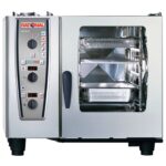 Описание Пароконвектомат Rational CM 61 Plus (автоматическая очистка) предназначена для выпечки хлебобулочных и кондитерских изделий, а также для приготовления штучных полуфабрикатов, блюд из рыбы, мяса и овощей на предприятиях общественного питания и торговли. RATIONAL CombiMaster® Plus: единственный в своем классе Новый CombiMaster® Plus опирается на выверенную технологию и поддерживает индивидуальное мастерство повара. Аппарат надёжен, прост в управлении и обладает функциями, которые позволяют всегда готовить блюда наивысшего качества. Особенности 5 рабочих режима пароконвектомата Уникальная производительность Оптимальный микроклимат в рабочей камере Максимальная простота в управлении Система генерации пара Активная система удаления влаги из рабочей камеры Функции Режим пароконвектомата, 3 рабочих режима: — пар 30°C-130°C, — горячий воздух 30°C-300°C, — комбинация пара и горячего воздуха 30°C-300°C ClimaPlus — измерение влажности, 5-ступенчатая настройка и регулировка Ручной Finishing Управление Рычаг установки рабочих режимов, температуры, температуры внутри продукта и времени Блокировка программирования Очистка, уход и надёжность в эксплуатации Встроенный ручной душ с возвратным механизмом, и функцией перекрывания воды и плавного регулирования напора струи (опция) Программа ручной очистки Сервисная диагностическая система (SDS) с автоматической индикацией сервисных сообщений Программа удаления накипи, управляемая с помощью меню Оснащение Интерфейс USB Измерение температуры внутри продукта с помощью термозонда Создание 100 индивидуальных программ приготовления, содержащих до 6 этапов 5 программируемых скоростей вентилятора Встроенная система сепарации жира, без дополнительного жирового фильтра, не требует техобслуживания Функция Cool-Down для быстрого охлаждения рабочей камеры с помощью вентилятора Мощный генератор свежего пара Автоматическая активная промывка и опорожнение парогенератора с помощью насоса Автоматическая регулировка в соответствии с условиями места установки (высота, климат и т.д.) Двойная стеклянная дверца с воздушной прослойкой и открываемым внутренним стеклом Гигиеничная рабочая камера без стыков, со скругленными углами; рабочая камера имеет предохранительное устройство на случай скопления жидкости — жидкость не выльется из рабочей камеры Съёмные поворотные навесные рамы (расстояние между направляющими 68 мм) Материал внутри и снаружи — специальная сталь 304 (DIN 1.4301) Ручной душ со встроенным возвратным механизмом Отдельные магнитные клапаны для стандартной и умягченной воды Допустимо жёсткое подключение к системе отвода сточных вод согласно SVGW Водозащищённость по стандарту IP X 5 Подача энергии регулируется в соответствии с потреблением Продольная загрузка для аксессуаров GN 1/1, 1/2, 2/3, 1/3, 2/8 Выбор единицы измерения температуры: °C или °F Регулируемые по высоте ножки аппарата Динамическое перемешивание воздуха Характеристики Ёмкость 6 x 1/1 GN (каталог гастроемкостей) Количество порций в день 30-80 Продольная загрузка 1/1, 1/2, 2/3, 1/3, 2/8 GN Труба подачи воды R 3/4“ Сливная труба DN 50 Давление воды 150-600 кПa или 0,15-0,6 Мпа Предохранители 3 x 16 A Подключение к сети 3 NAC 400 В Мощность в режиме “Горячий воздух” 10,3 кВт Мощность в режиме “Пар” 9 кВт (!) Для смягчения и декальционирования водопроводной воды рекомендуется приобрести водоумягчитель.