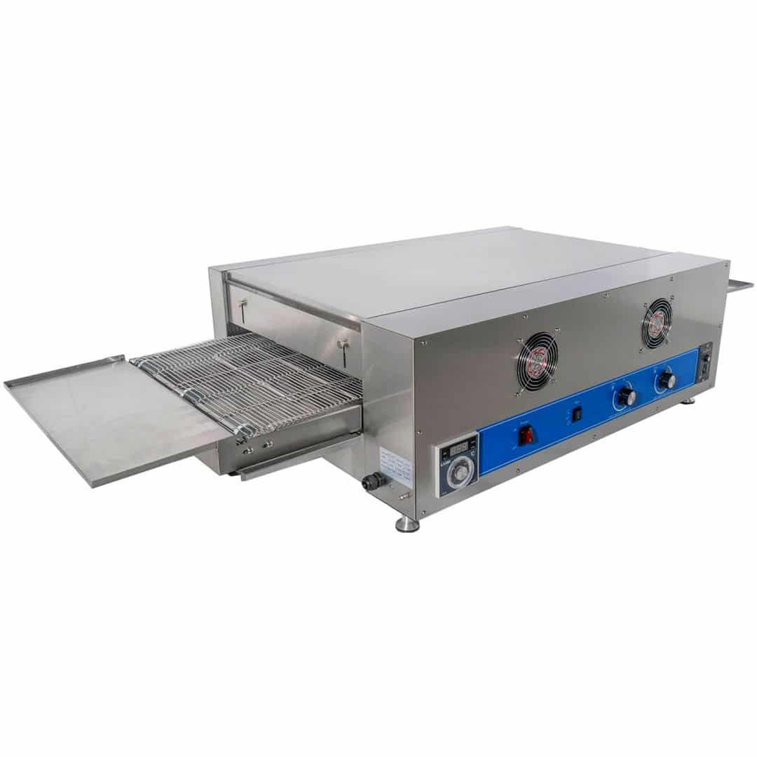 Описание Печь конвейерная Gastromix CO-18 предназначена для непрерывного приготовления пиццы, но также прекрасно подходят для плоского хлеба, фокаччо и т. п. на предприятиях общественного питания и торговли. Печь оснащена электромеханической панелью управления, независимыми регуляторами нагрева верхней и нижней поверхности, регулятором скорости движения конвейерной ленты. Максимальная температура печей — 400C. Время выпечки одной пиццы составляет около 3-4 минут. Оборудование штекером питания не оснащено — для подключения к электропитанию необходим штекер от 25 до 32 А. Особенности Независимая регулировка верхних и нижних ТЭНов Электромеханическая панель управления Исполнение корпуса и конвейера — нержавеющая сталь Реверс для изменения направления движения конвейера Характеристики Производительность 20 пицц диаметром 46 см Максимальная высота изделий 65 мм Температурный режим 50-400С Количество нагревательных элементов — 24