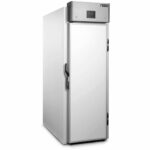 Описание Камера отложенной расстойки GEMM PLANET CL1/0911E предназначена для расстойки тестовых заготовок перед процессом выпечки или для сохранения тестовых заготовок при холодной температуре до -10ºС без расстойки (функция задержки расстойки) на предприятиях общественного питания и торговли. Процесс можно разбить на две фазы, «холодную», когда продукт сохраняется при холодной температуре без расстойки (функция задержки расстойки) и «горячую», при которой обеспечивается сама расстойка. Весь процесс, несмотря на простоту управления, контролируется с максимальной точностью благодаря электронному термостату. Камера представляет собой модульный элемент, который легко вписать в любое помещение. Модуль состоит из белых металлических панелей с толщиной изоляции 70 мм. Пол также с изоляцией 20 мм, оснащен удобным порогом для ввоза тележки. Внутри камеры установлен алюминиевый бампер. Особенности Модульная конструкция Панели из пластифицированного цинкового листа, толщиной 70 мм. Пол из армированной нержавеющей стали AISI 304, толщиной 20 мм. Предусмотрен пандус для закатывания тележек. Камера оснащена внутри отбойниками из нержавеющей стали AISI 304. Температурный режим -10/+40°С. Цикличное инжекторное пароувлажнение. Возможность генерировать сухой пар, для избежания образования конденсата. Контроль влажности с электронным датчиком. Сенсорная панель управления. До 100 рабочих программ (10 избранных) 6 языков Характеристики Компрессор: встроенный Внутренние размеры: 70х100х175 см Температурный режим: -10/+40°C Фреон R404a Вместимость: 1 тележка 600×800 мм (Каталог противней)