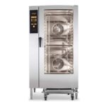 Описание Пароконвектомат Retigo O2011B Vision II серии Orange отвечает требованиям клиентов, в приоритете у которых стоит высокое качество и простота управления. У пароконвектоматов Orange Vision II уже предустановлен температурный щуп и ручной душ. Функциональный дизайн подчеркивает простоту управления пароконвектоматов, цифровой дисплей позволяет выполнять настройку и управление. Все модели в базовой конфигурации оснащены функцией автоматической мойки. Пароконвектомат идеально подходит для производственных мощностей от 400 до 600 порций в день. В стандартное оснащение входит загрузочная тележка. Стандартное оснащение • Дверка с тройным стеклом – минимальные потери тепла, низкое энергопотребление, ограничение ожогов. • Вентилятор с автореверсом – равномерность пропекания. • AISI 304 из нержавеющей стали – высококачественные материалы из нержавеющей стали со специальным покрытием для увеличения срока службы. • WSS (Water Saving System) – специальная система слива и встроенный теплообменник обеспечивают очень низкий расход воды. • Active Cleaning – экономная система автоматической мойки Приготовление Горячий воздух 30 – 300 °C Комбинированный режим 30 – 300 °C Приготовление на пару 30 – 130 °C Био приготовление 30 – 98 °C • Ночное приготовление – экономия времени и средств. • Проработанная система парообразования – прекрасные результаты приготовления на пару благодаря двухступенчатому подогреву воды и рекуперации. • Горизонтальная загрузка – безопасность и удобство. • Низкотемпературная варка – уменьшение потерь веса, улучшение вкусовых качеств. • Автоматический подогрев/охлаждение варочной камеры с возможностью задания требуемой температуры. Vision Touch Controls • Сенсорная панель – панель отлично и быстро работает в любых условиях ,без механических элементов и кнопок. • Автоматический запуск – возможность запланировать отложенный запуск. • Бесконечное время приготовления – экономия времени при приготовлении в час-пик. Унификация подключения • Интерфейс USB – простое воспроизведение данных внутрь и из конвектомата. • Программное обеспечение VisionCombi – администрация программ и пиктограмм на Вашем компьютере, просмотр данных НАССР. Эксплуатационные записи • Запись НАССР – легкий и непосредственный анализ критических пунктов приготовления. • Полная документация эксплуатационных событий Сервис • BCS (Boiler Control System) – автоматический контроль бойлера, автоматический переход в режим впрыска в случае выхода бойлера из строя • Система обслуживания и диагностики – автоматический анализ ошибок (Каталог гастроемкостей) (Каталог противней) (!) Для смягчения и декальционирования водопроводной воды рекомендуется приобрести водоумягчитель.