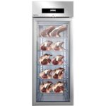 Описание Шкаф для вызревания мяса и сыра Lo Stagionatore Meat&Cheese 700 Glass Evertouch используется для вызревания твердых сыров и для сухой выдержки мяса. Созревание сыров требует более высокой влажности и температуры, в отличие от мяса, именно поэтому шкаф данной линейки имеет возможность подключения к воде, для расширения значений диапазона влажности. Кроме того, шкаф Meat&Cheese имеет расширенный ассортимент аксессуаров и опций, таких как touch-панель управления, с возможностью загрузки/выгрузки рецептов и разбора фаз созревания, контактный датчик продукта и другое. Идеально подойдет для ресторанов, мясных лавок и небольших мясных производств. Сухая выдержка мяса (или сухое созревание мяса) – это одна из древнейших техник обработки мяса. Процесс основан на активизации ферментов, присутствующих в мясе, что приводит к ускорению химических процессов, которые разрушают мышечные волокна, делая продукт более нежным, формируя вкусовой «букет» и насыщенный аромат. Строгий контроль за температурой и влажностью воздуха предотвращает развитие бактерий и плесени. Продукт содержится в специально созданных условиях порядка 3-4 недель, после чего мясо приобретает непередаваемые вкусовые качества и нежнейшую текстуру. Внутренний объем, производительность и оснащение позволяют производить продукт высочайшего качества без дополнительных усилий. Шкаф LoStagionatore обеспечивает безопасную, защищенную и регулируемую микросреду благодаря использованию передовых технологий и многолетнего опыта компании в области холодильного оборудования. Корпус шкафа полностью изготовлен из нержавеющей стали. Особенности Панель управления Evertouch Высокоточная регулировка влажности и температуры Исполнение полностью из нержавеющей стали AISI 304 Толщина изоляции 75 мм (полиуретан) Запись данных HACCP Легко съемные направляющие для полок Требует подключения к воде Качественная очистка воздуха, благодаря усовершенствованной вентиляции и УФ-стерилизации Акустическая сигнализация и запираемая дверь Регулируемые по высоте ножки (130-200 мм) из нержавеющей стали Низкие массовые потери за счет циркуляции влаги внутри шкафа Комплектация: Полка — 5 шт Внимание! На фото похожая модель с другой панелью управления.