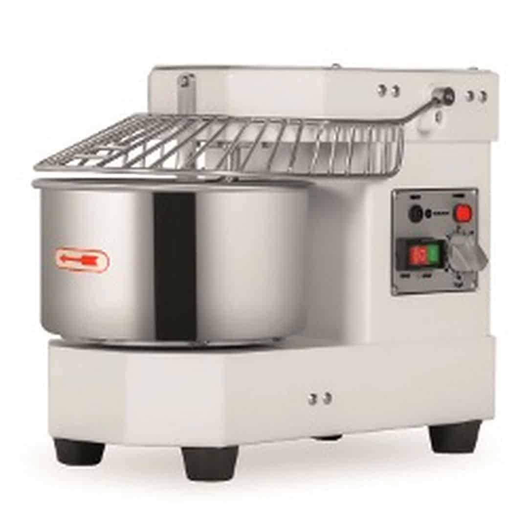 314x510x380, 220В, 0,45кВт, 1-скор. двиг., фикс. дежа н/ст 8 л, крюк., разовый замес — 3 кг муки, примерно 4,5 кг теста, скорость вращения крюка — 159 об/мин., скорость вращения дежи 21 об/мин.
