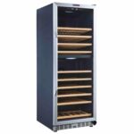 Описание Винный шкаф для длительного хранения напитков LaSommeliere MZ135DZ способен вместить 135 бутылок стандартного типа Бордо, а возможность встройки поможет разместить его с максимальным удобством и комфортом. Характеристики Шкаф для длительного хранения вина Место установки винного шкафа Отдельностоящий / Встраиваемый Цвет черный корпус с дверью из нержавеющей стали Вместимость, бут. 0,75л 135 Тип двери шкафа Со стеклопакетом с УФ защитой Перенавешиваемая дверь Замок Система охлаждения Компрессорная Управление Сенсорный цифровой дисплей Кол-во температурных зон Двухзонный Диапазон регулировки температуры 5-12°C 12-20°C Поддержка влажности с помощью «плачущей» стенки Система «Зима» Уровень шума, дБ 42 Энергопотребление, кВт в год 195 Класс энергопотребления G Климатический класс N-ST (от +16 до +38°C) Потребляемая мощность (Вт) 150 Хладагент R600A