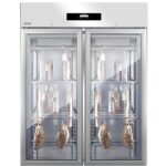 Описание Шкаф для вызревания салями Lo Stagionatore Salami 1500 Glass предназначен для созревания салями. Оборудован он на основе особенности размещения продукта внутри шкафа: устанавливаются направляющие с крюками, на которые вешается продукт для дальнейшей обработки. Созревание салями требует более высокой влажности и температуры, поэтому шкаф данной линейки имеет возможность подключения к воде, для расширения значений диапазона влажности. Кроме того, шкаф Meat&Cheese имеет расширенный ассортимент аксессуаров и опций, таких как touch-панель управления, с возможностью загрузки/выгрузки рецептов и разбора фаз созревания, контактный датчик продукта и другое. Идеально подойдет для ресторанов, мясных лавок и небольших мясных производств. Шкаф LoStagionatore обеспечивает безопасную, защищенную и регулируемую микросреду благодаря использованию передовых технологий и многолетнего опыта компании в области холодильного оборудования. Корпус шкафа полностью изготовлен из нержавеющей стали, а дверца из ударопрочного закаленного стекла, благодаря чему можно наблюдать за процессом выдержки. Особенности Функциональная панель управления Высокоточная регулировка влажности и температуры Исполнение полностью из нержавеющей стали AISI 304 Толщина изоляции 75 мм (полиуретан) Запись данных HACCP Легко съемные направляющие для полок Требует подключения к воде Качественная очистка воздуха, благодаря усовершенствованной вентиляции и УФ-стерилизации Акустическая сигнализация и запираемая дверь Регулируемые по высоте ножки (130-200 мм) из нержавеющей стали Низкие массовые потери за счет циркуляции влаги внутри шкафа Тouch-панель управления (опционально) PH-зонд (опционально) Комплектация: Направляющая для крюков — 18 шт Крюк для салями — 72 шт