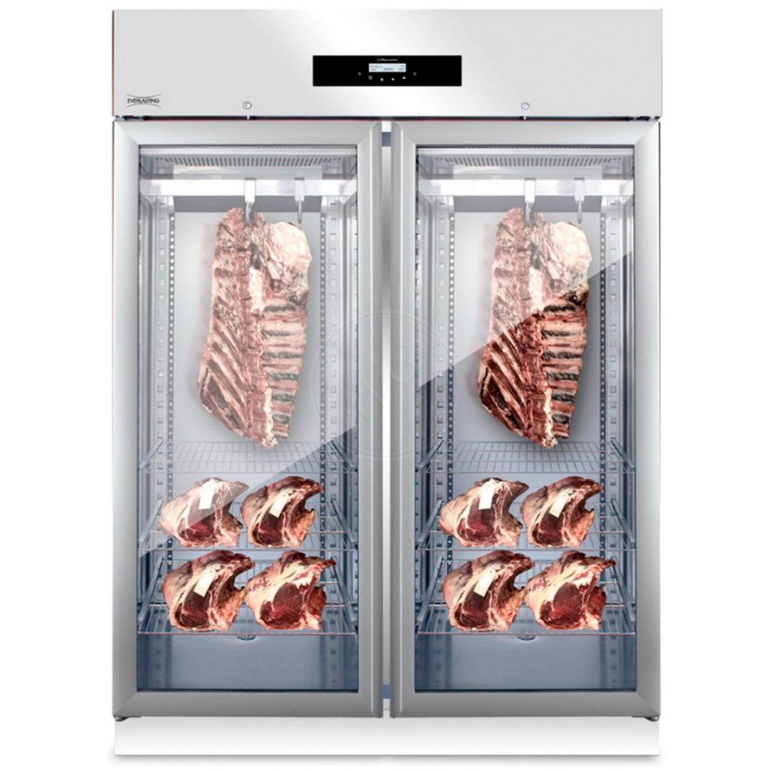 Описание Шкаф для вызревания мяса Lo Stagionatore Salami 1500 Glass предназначен для сухого созревания мяса: говядины, свинины, телятины. Шкаф для выдержки обеспечивает безопасную, защищенную и регулируемую микросреду, обладая при этом великолепным дизайном, благодаря использованию передовых технологий и многолетнего опыта компании в области холодильного оборудования. Идеально подойдет для ресторанов, мясных лавок и небольших мясных производств. Корпус шкафа полностью изготовлен из нержавеющей стали (75 мм изоляции), а дверца из ударопрочного закаленного стекла, благодаря чему можно наблюдать за процессом выдержки. Усовершенствованная система вентиляции и ультрафиолетовая лампа позволяют поддерживать оптимальный микроклимат для активизации химических процессов (ферментации) в мясе, предотвращая при этом размножение патогенных бактерий. Мясо после процесса созревания приобретает насыщенный вкус и аромат с минимальными массовыми потерями. Особенности Функциональная панель управления Высокоточная регулировка влажности и температуры Исполнение полностью из нержавеющей стали AISI 304 Толщина изоляции 75 мм (полиуретан) Запись данных HACCP Легко съемные направляющие для полок Требует подключения к воде Качественная очистка воздуха, благодаря усовершенствованной вентиляции и УФ-стерилизации Акустическая сигнализация и запираемая дверь Регулируемые по высоте ножки (130-200 мм) из нержавеющей стали Низкие массовые потери за счет циркуляции влаги внутри шкафа Тouch-панель управления (опционально) PH-зонд (опционально) Комплектация: Направляющие для полок — 6 шт. Направляющая для крюков — 2 шт. Полка — 6 шт. Крюк — 4 шт.