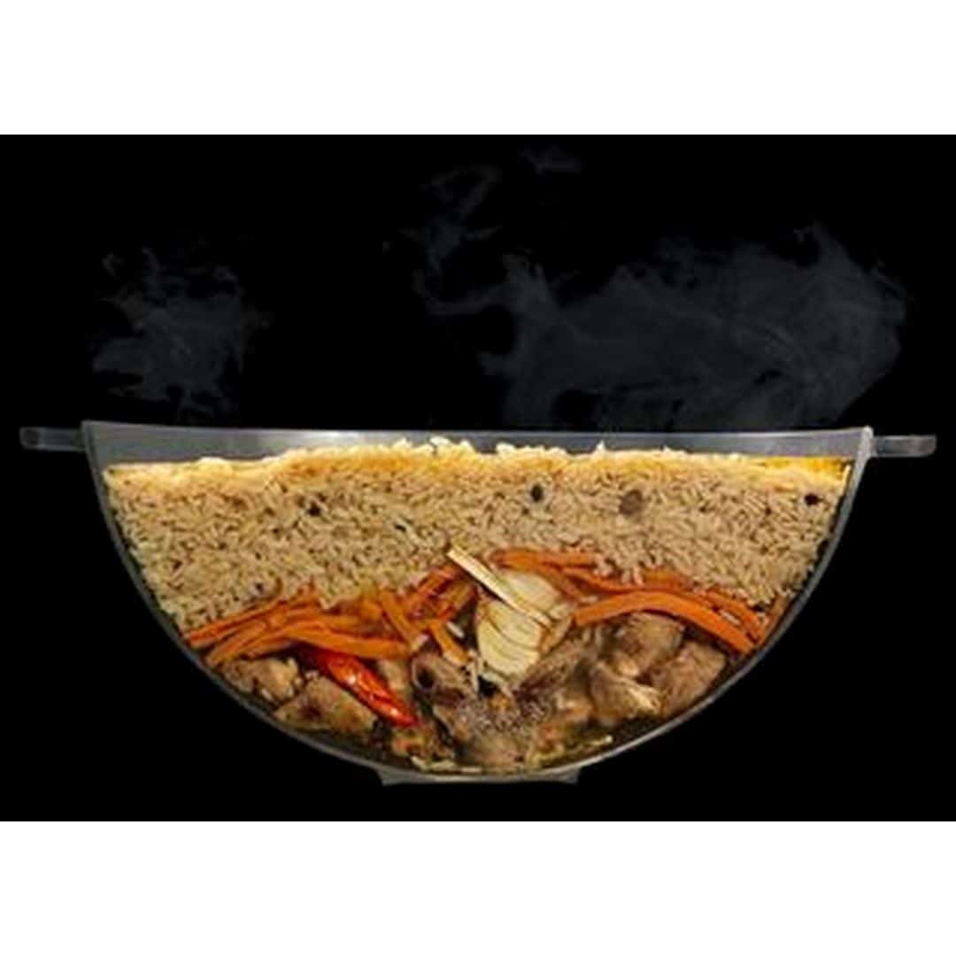 Описание Казан индукционный относится к разряду профессионального кухонного оборудования и предназначен для приготовления пищи. Казан предназначен для приготовления плова, гречки, овощного рагу и других разнообразных блюд. В чугунном казане можно жарить, тушить, варить, запекать и готовить на пару. Прибор оснащен режимом быстрого набора максимальной температуры (BOOST), электронным контролем заданном температуры и съемной чугунной чашей. Все наружные поверхности казана выполнены из нержавеющей стали, что положительно сказывается на внешнем виде изделия и сроке его эксплуатации. Верхняя часть казана оборудована чашей казана в которой происходит приготовление пиши и крышка чаши казана. Казан индукционный работает от трехпроводной электрической сети напряжением 220В±10% переменного тока с частотой 50 Гц с наличием заземляющего провода. Плита предназначена для установки в помещении с температурой не ниже +10°С и не выше +40ºС и относительной влажности воздуха 60%. Технические характеристики Габаритные размеры казана, мм. 600х760х400 Объем чаши казана, л. 25 Диаметр чаши казана, мм ~520±20 Номинальная потребляемая мощность, кВт. 3,5 Номинальное напряжение, В. 220 Диапазон рабочих температур, ˚С 60-240 Вес нетто не более, кг. 58 Комплект поставки — казан индукционный — 1 шт. — крышка казана — 1 шт. — паспорт — 1 шт. — руководство по эксплуатации — 1 шт.