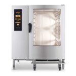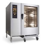 Описание Пароконвектомат Retigo O1221B Vision II серии Orange отвечает требованиям клиентов, в приоритете у которых стоит высокое качество и простота управления. У пароконвектоматов Orange Vision II уже предустановлен температурный щуп и ручной душ. Функциональный дизайн подчеркивает простоту управления пароконвектоматов, цифровой дисплей позволяет выполнять настройку и управление. Все модели в базовой конфигурации оснащены функцией автоматической мойки. Пароконвектомат идеально подходит для производственных мощностей от 400 до 600 порций в день. В стандартное оснащение входит загрузочная тележка. Стандартное оснащение • Дверка с тройным стеклом – минимальные потери тепла, низкое энергопотребление, ограничение ожогов. • Вентилятор с автореверсом – равномерность пропекания. • AISI 304 из нержавеющей стали – высококачественные материалы из нержавеющей стали со специальным покрытием для увеличения срока службы. • WSS (Water Saving System) – специальная система слива и встроенный теплообменник обеспечивают очень низкий расход воды. • Active Cleaning – экономная система автоматической мойки Приготовление Горячий воздух 30 – 300 °C Комбинированный режим 30 – 300 °C Приготовление на пару 30 – 130 °C Био приготовление 30 – 98 °C • Ночное приготовление – экономия времени и средств. • Проработанная система парообразования – прекрасные результаты приготовления на пару благодаря двухступенчатому подогреву воды и рекуперации. • Горизонтальная загрузка – безопасность и удобство. • Низкотемпературная варка – уменьшение потерь веса, улучшение вкусовых качеств. • Автоматический подогрев/охлаждение варочной камеры с возможностью задания требуемой температуры. Vision Touch Controls • Сенсорная панель – панель отлично и быстро работает в любых условиях ,без механических элементов и кнопок. • Автоматический запуск – возможность запланировать отложенный запуск. • Бесконечное время приготовления – экономия времени при приготовлении в час-пик. Унификация подключения • Интерфейс USB – простое воспроизведение данных внутрь и из конвектомата. • Программное обеспечение VisionCombi – администрация программ и пиктограмм на Вашем компьютере, просмотр данных НАССР. Эксплуатационные записи • Запись НАССР – легкий и непосредственный анализ критических пунктов приготовления. • Полная документация эксплуатационных событий Сервис • Система обслуживания и диагностики – автоматический анализ ошибок (Каталог гастроемкостей) (Каталог противней) (!) Для смягчения и декальционирования водопроводной воды рекомендуется приобрести водоумягчитель.