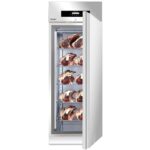 Описание Шкаф для вызревания мяса и сыра Lo Stagionatore Meat&Cheese 700 Inox используется для вызревания твердых сыров и для сухой выдержки мяса. Созревание сыров требует более высокой влажности и температуры, в отличие от мяса, именно поэтому шкаф данной линейки имеет возможность подключения к воде, для расширения значений диапазона влажности. Кроме того, шкаф Meat&Cheese имеет расширенный ассортимент аксессуаров и опций, таких как touch-панель управления, с возможностью загрузки/выгрузки рецептов и разбора фаз созревания, контактный датчик продукта и другое. Идеально подойдет для ресторанов, мясных лавок и небольших мясных производств. Сухая выдержка мяса (или сухое созревание мяса) – это одна из древнейших техник обработки мяса. Процесс основан на активизации ферментов, присутствующих в мясе, что приводит к ускорению химических процессов, которые разрушают мышечные волокна, делая продукт более нежным, формируя вкусовой «букет» и насыщенный аромат. Строгий контроль за температурой и влажностью воздуха предотвращает развитие бактерий и плесени. Продукт содержится в специально созданных условиях порядка 3-4 недель, после чего мясо приобретает непередаваемые вкусовые качества и нежнейшую текстуру. Внутренний объем, производительность и оснащение позволяют производить продукт высочайшего качества без дополнительных усилий. Шкаф LoStagionatore обеспечивает безопасную, защищенную и регулируемую микросреду благодаря использованию передовых технологий и многолетнего опыта компании в области холодильного оборудования. Корпус шкафа полностью изготовлен из нержавеющей стали. Особенности Функциональная панель управления Высокоточная регулировка влажности и температуры Исполнение полностью из нержавеющей стали AISI 304 Толщина изоляции 75 мм (полиуретан) Запись данных HACCP Легко съемные направляющие для полок Требует подключения к воде Качественная очистка воздуха, благодаря усовершенствованной вентиляции и УФ-стерилизации Акустическая сигнализация и запираемая дверь Регулируемые по высоте ножки (130-200 мм) из нержавеющей стали Низкие массовые потери за счет циркуляции влаги внутри шкафа Тouch-панель управления (опционально) PH-зонд (опционально) Комплектация: Полка — 5 шт