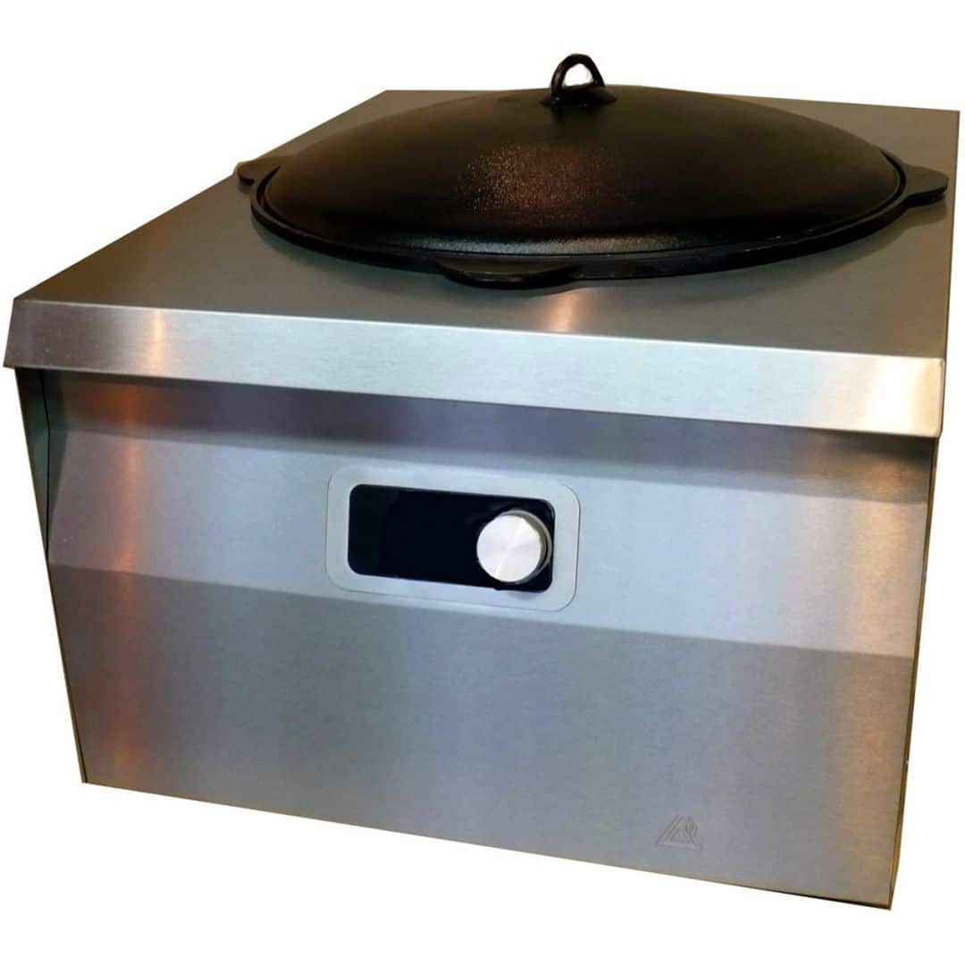 Описание Казан индукционный Iterma ИК-12 относится к разряду профессионального кухонного оборудования и предназначен для приготовления пищи. Казан предназначен для приготовления плова, гречки, овощного рагу и других разнообразных блюд. В чугунном казане можно жарить, тушить, варить, запекать и готовить на пару. Прибор оснащен режимом быстрого набора максимальной температуры (BOOST), электронным контролем заданном температуры и съемной чугунной чашей. Все наружные поверхности казана выполнены из нержавеющей стали, что положительно сказывается на внешнем виде изделия и сроке его эксплуатации. Верхняя часть казана оборудована чашей казана в которой происходит приготовление пиши и крышка чаши казана. Казан индукционный работает от трехпроводной электрической сети напряжением 220В±10% переменного тока с частотой 50 Гц с наличием заземляющего провода. Плита предназначена для установки в помещении с температурой не ниже +10°С и не выше +40ºС и относительной влажности воздуха 60%. Комплект поставки — казан индукционный — 1 шт. — крышка казана — 1 шт. — паспорт — 1 шт. — руководство по эксплуатации — 1 шт.